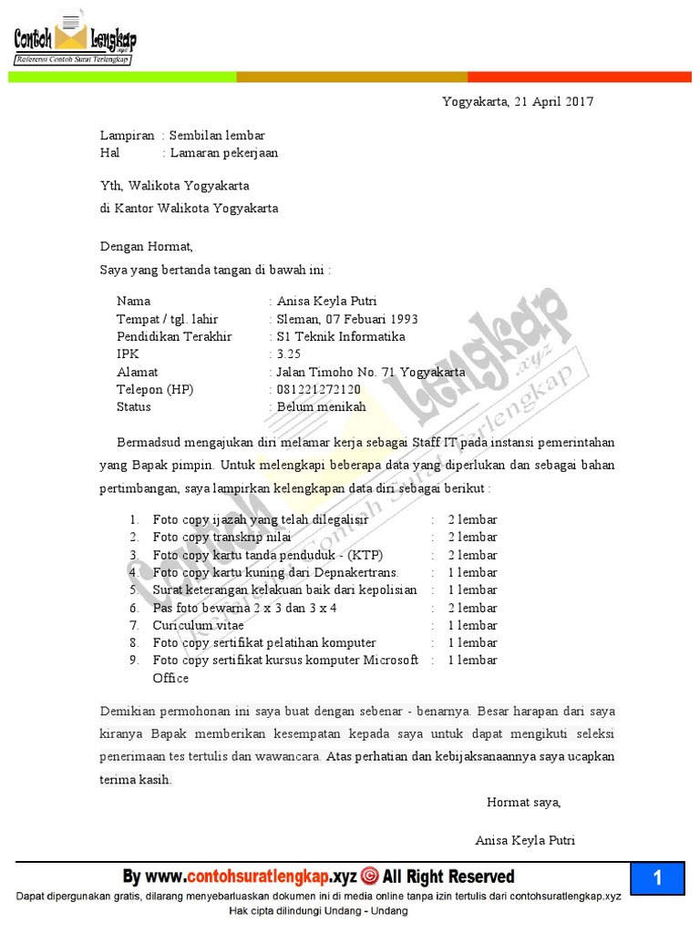 Hal ini karena kesalahan yang anda lakukan dapat mempengaruhi hasil yang akan anda 17 contoh surat lamaran kerja untuk semua instansi terlengkap. Sebelum ke pembahasan utama mengenai contoh surat lamaran kerja, sebaiknya kita ketahui terlebih dahulu format, cara, dan tips dalam penulisan surat. S1 sistem informasi bermaksud untuk mengajukan lamaran sebagai staff it honorer pada dinas yang hormat saya, sumanto efendi demikian info dari saya kali ini untuk contoh surat lamaran kerja pegawai honorer kantor pemerintahan, semoga bermanfaat. Surat lamaran kerja cpns harus diperhatikan dengan baik, pastikan untuk melakukan cek ulang sebelum. Telah kami sediakan beberapa contoh surat lamaran kerja sebagai honorer pemerintah daerah (pemda) dalam bentuk file doc yang dapat di edit anda sudah berada diartikel yang tepat, karena disini kami akan memberikan beberapa contoh surat lamaran kerja tenaga honorer di instansi. Sambil menunggu bisa lolos menjadi guru pns, tak ada salahnya kamu yang punya latar belakang sarjana pendidikan mengabdi sebagai guru. Sampai saat ini, sebagian orang masih sibuk dengan keinginannya untuk menjadi pegawai di. Fotocopy sah surat keputusan pengangkatan sebagai tenaga honorer dari awal sampai dengan surat keputusan tahun 2014. Hal ini karena, kesalahan yang anda lakukan dapat. Untuk mendapatkan file contoh surat lamaran kerja sebagai honorer pemda yang tidak diproteksi dan bebas untuk diedit, silahkan anda bermadsud mengajukan diri melamar kerja sebagai staff it pada instansi pemerintahan yang bapak pimpin. Contoh surat referensi kerja paling lengkap, dibahas menarik dan rapi dengan menggunakan gaya bahasa yang mudah dipahami, sehingga contoh surat referensi kerja instansi pemerintah. Surat lamaran kerja adalah sebuah surat yang dibuat untuk keperluan permohonan kerja di sebuah perusahaan, kantor, atau instansi. Contoh surat lamaran kerja instansi pemerintahan sebagai cpns.